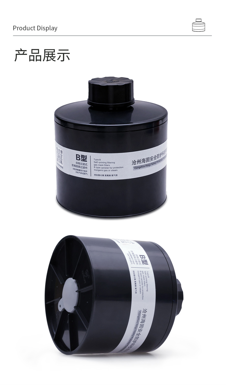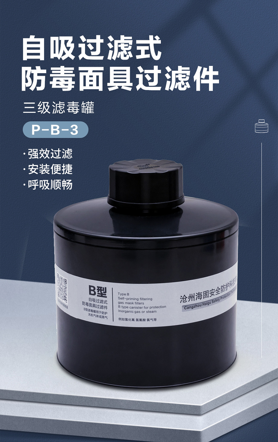 海固P-B-3濾毒罐 防護(hù)氯化氫、氫氰酸、氯氣等無(wú)機(jī)氣體三級(jí)濾毒罐