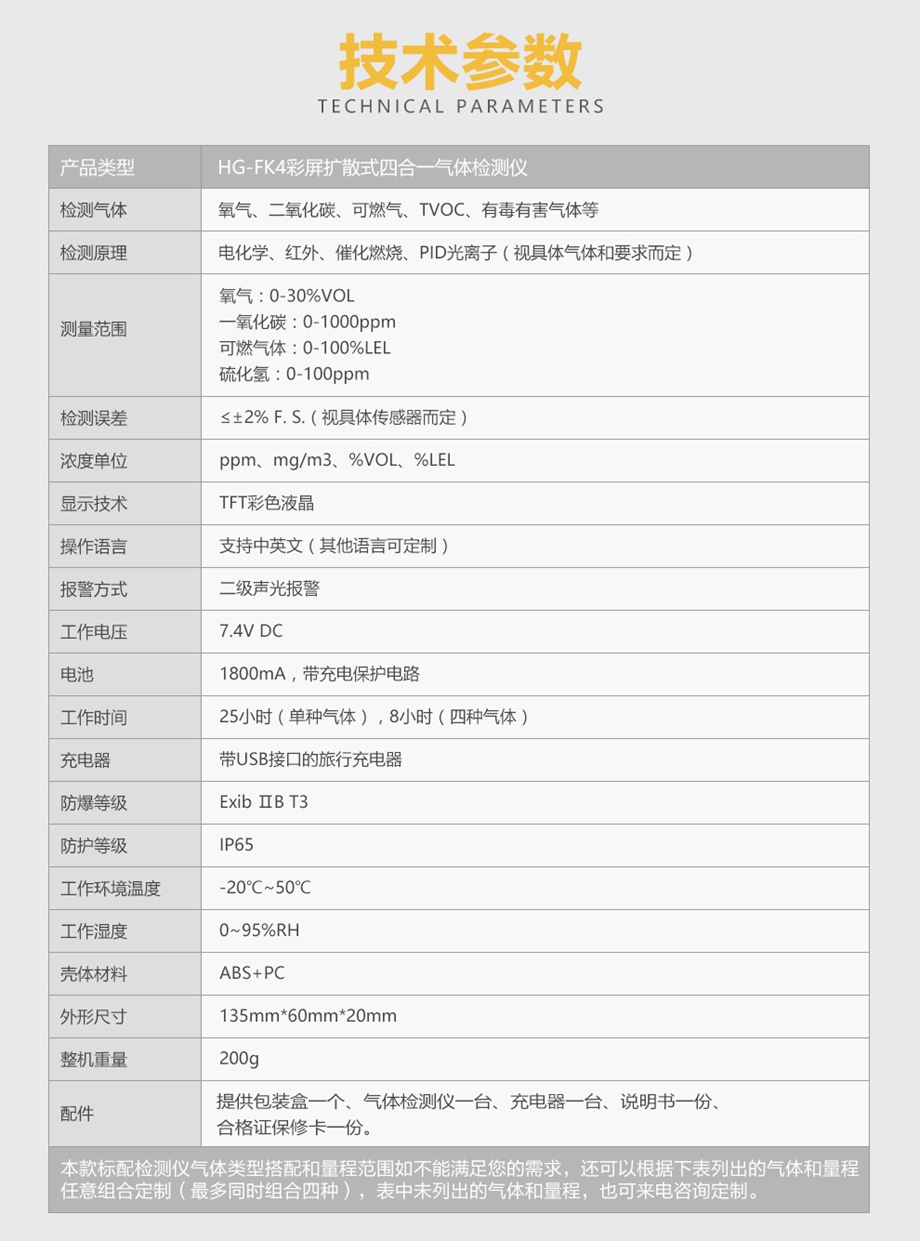 海固HG-FK4彩屏擴散式四合一氣體檢測儀